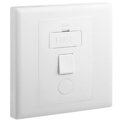 Eloe - 1 gang Fuse Connect Unit switched + cord outlet - White