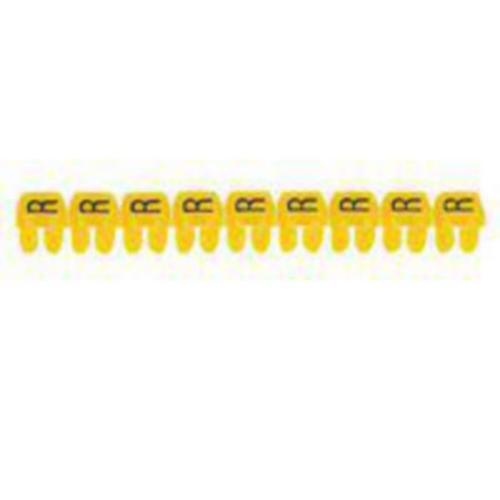Markers for wiring 0,15 to 0,5 mm² and 0,5 to 1.5 mm² cross - section and terminal blocks - On Viking 3 terminal blocks - 4 markers 0,15 to 0,5 mm² max - 3 markers 0,15 to 1.5 mm² max - Pack : - Up to 0,5 mm² : strips of 25 markers - From 0,5 mm² to 2.5 mm² : strips of 30 markers - Price per marker Letters : black on yellow background - 0,5 to 1.5² - J