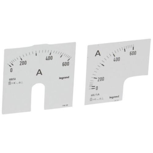 Analogue metering devices Measuring dial for ammeters - Supplied by set of 2 (1 for round barrel, 1 for square barrel) - 0 - 600 A