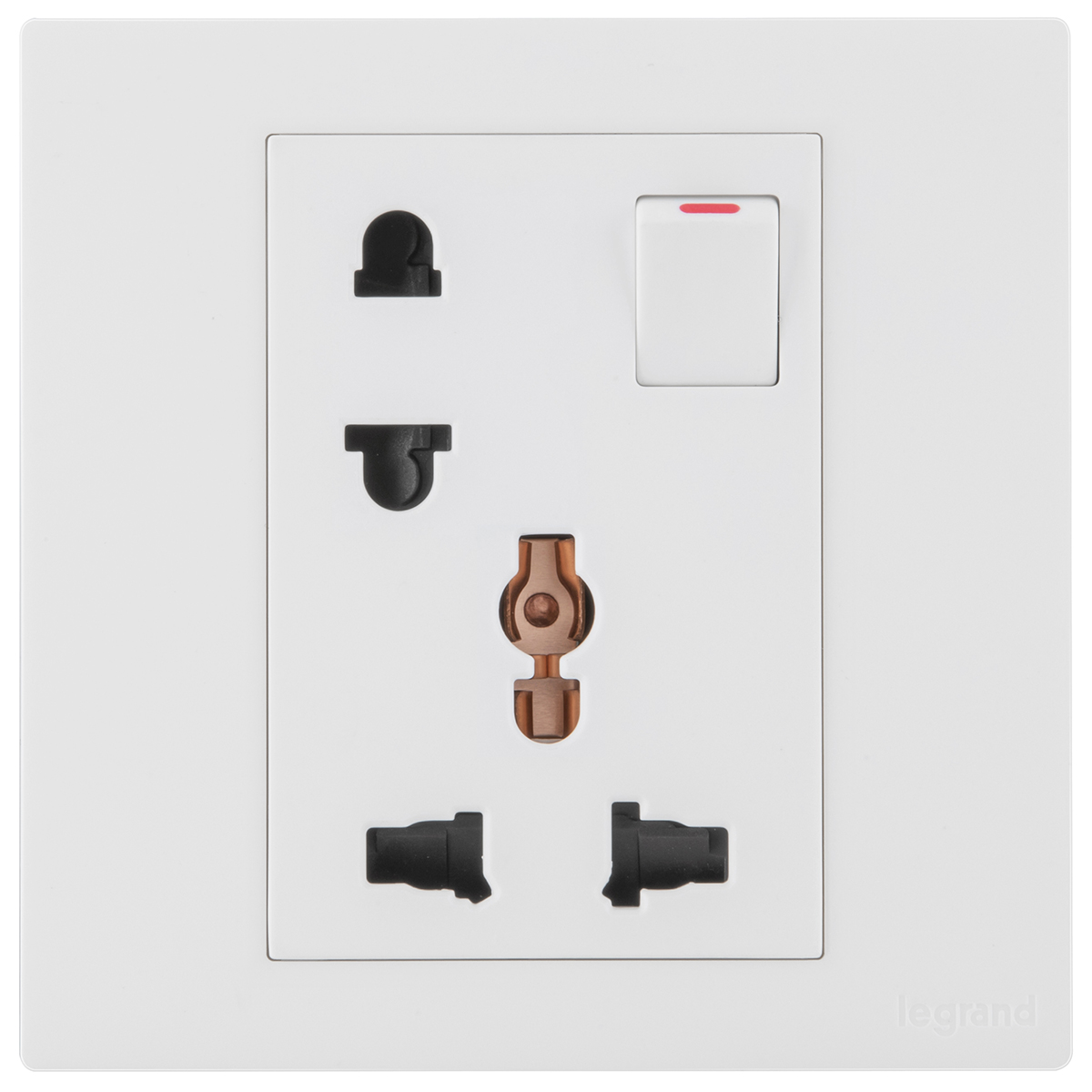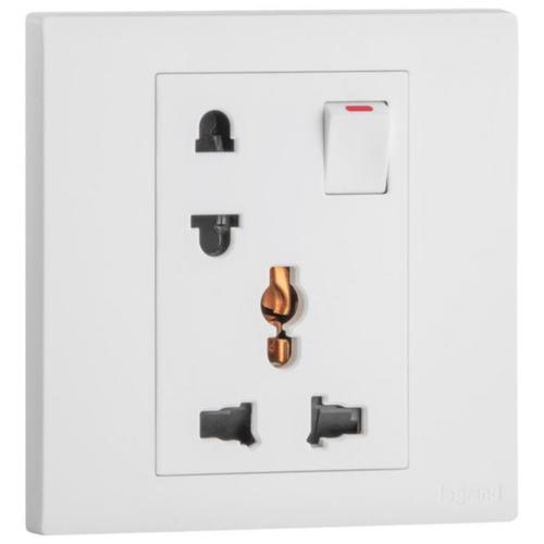 This device combines 2 sockets. A multistandard switched socket which allows the supply of power to electrical device compatible with Euro, US, Indian, Chinese or British standards and a switched Euro US socket.