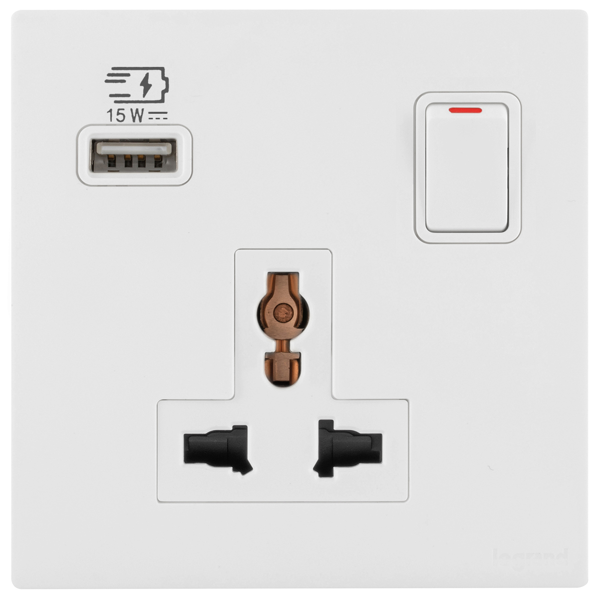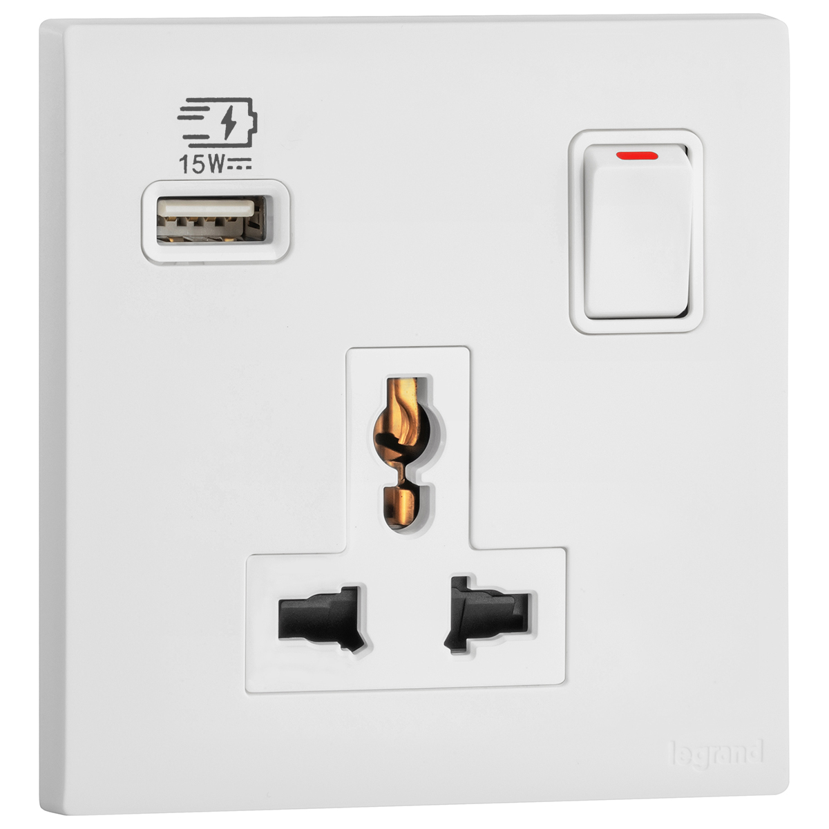The multistandard switched socket alllows the power supply up to two electronic devices compatible with Euro, US, Indian, Chinese or British standards. The single USB A charger allows to charge any electronic device fast and conveniently.