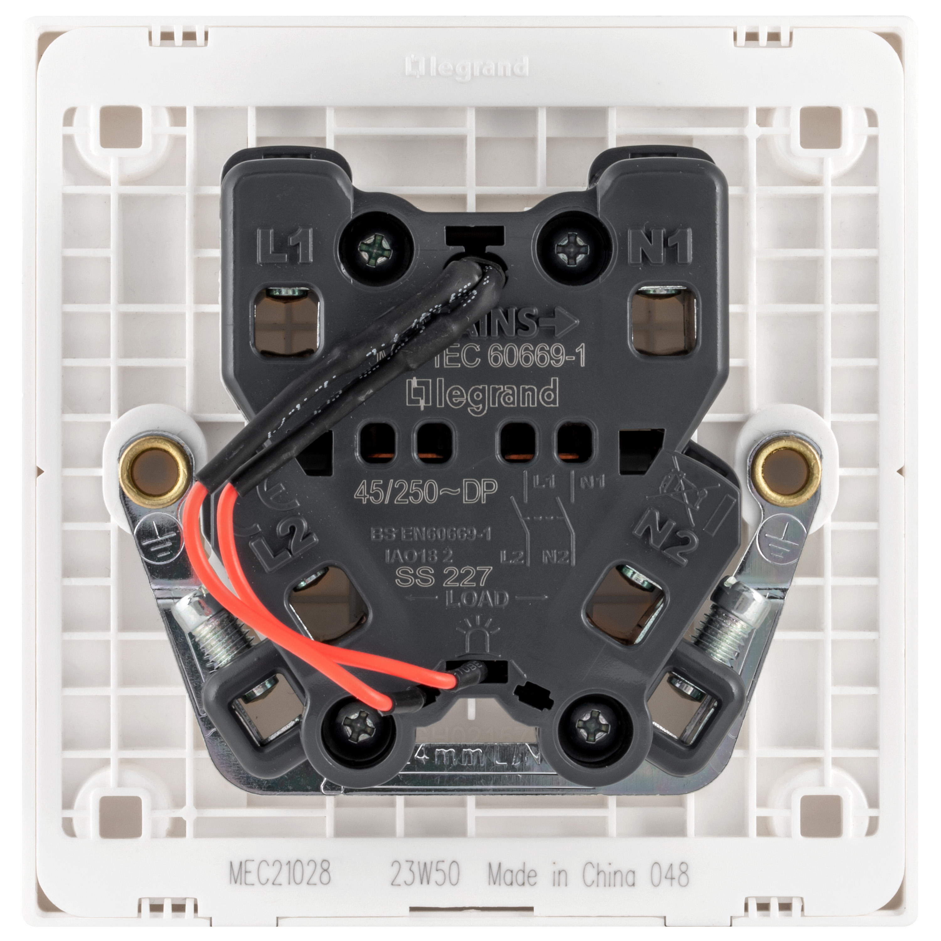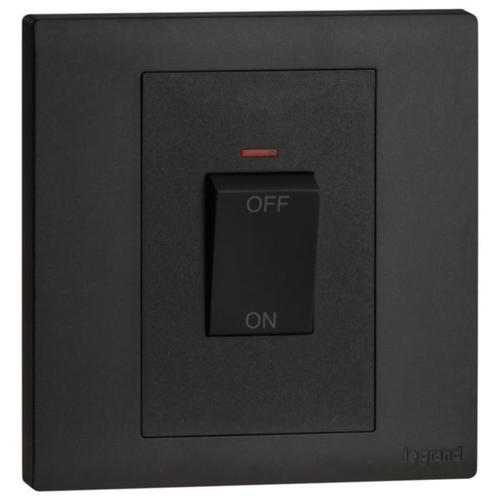 Allows to control the power supply to a 45A electrical device. Features Red LED indicator and white switch.