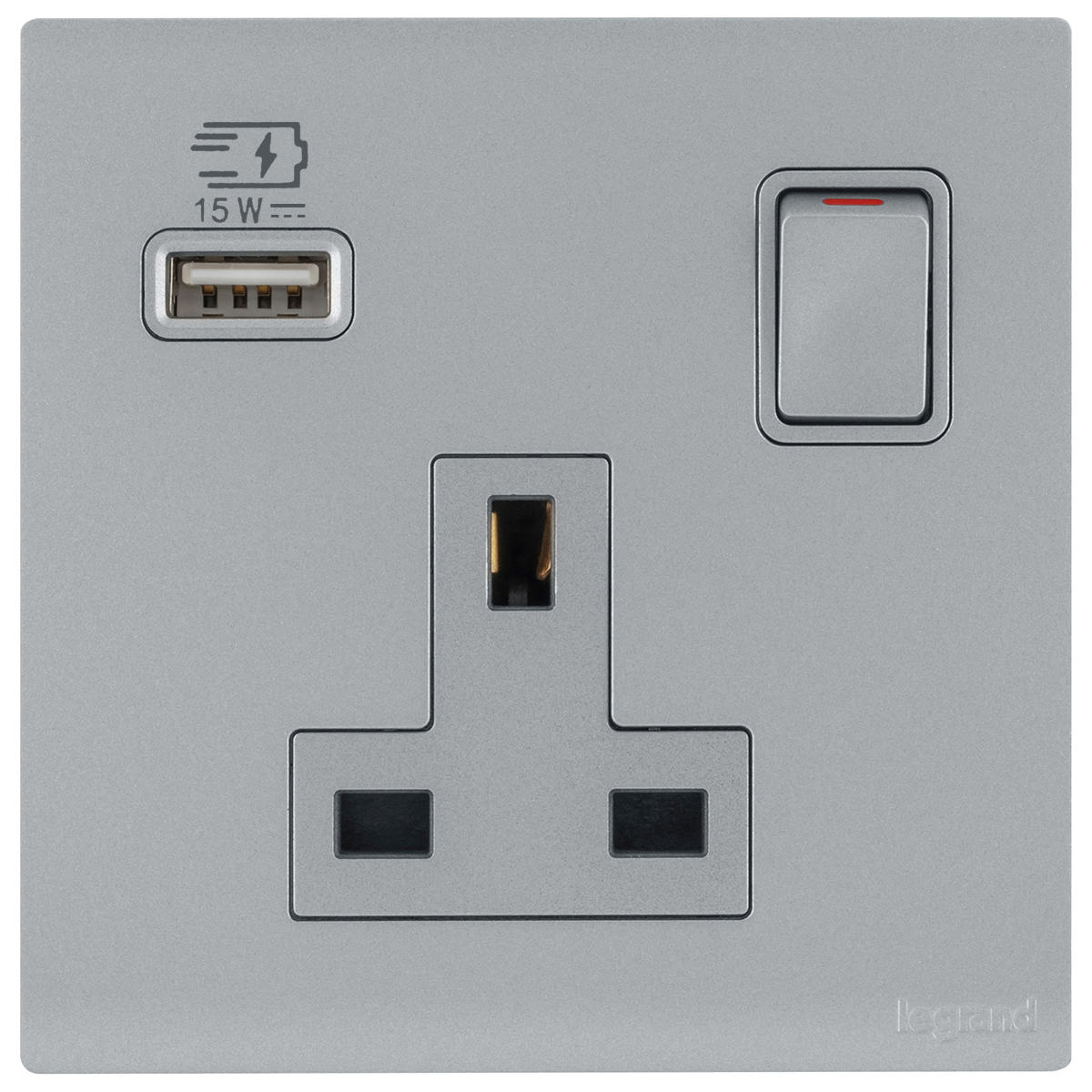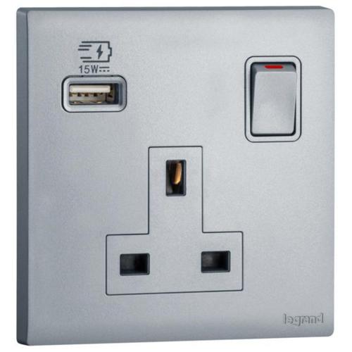 The switched socket outlet single pole allows to connect an electronic device. The single USB A charger allows to charge any electronic device fast and conveniently.