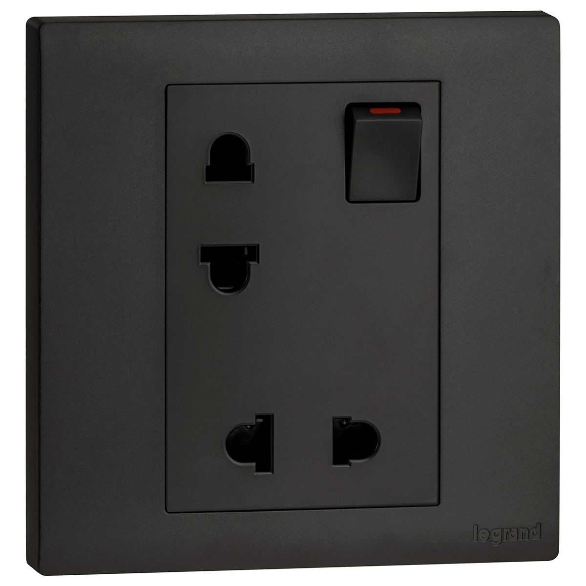 This duplex Euro-US switched socket allows the connection of two electrical devices to power.