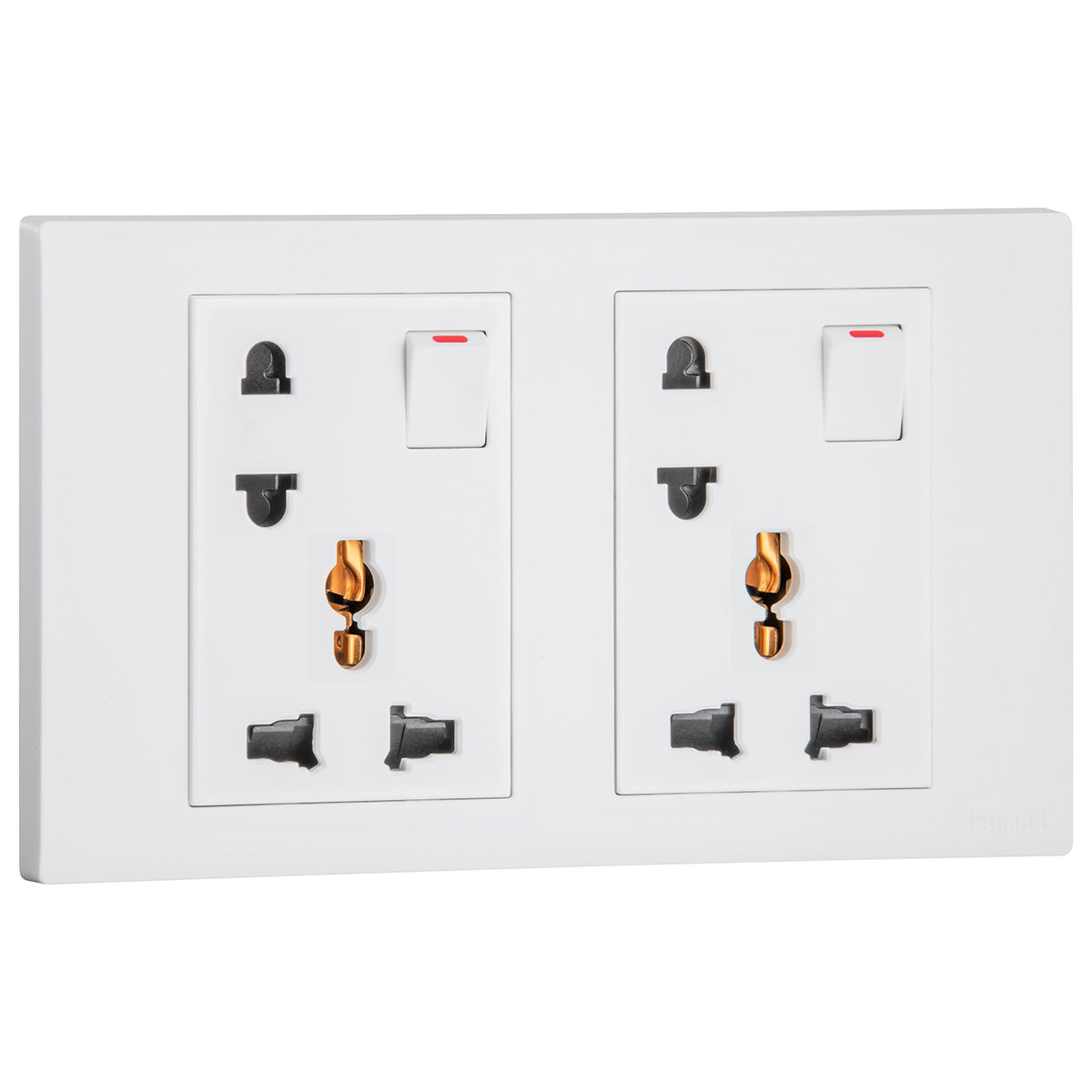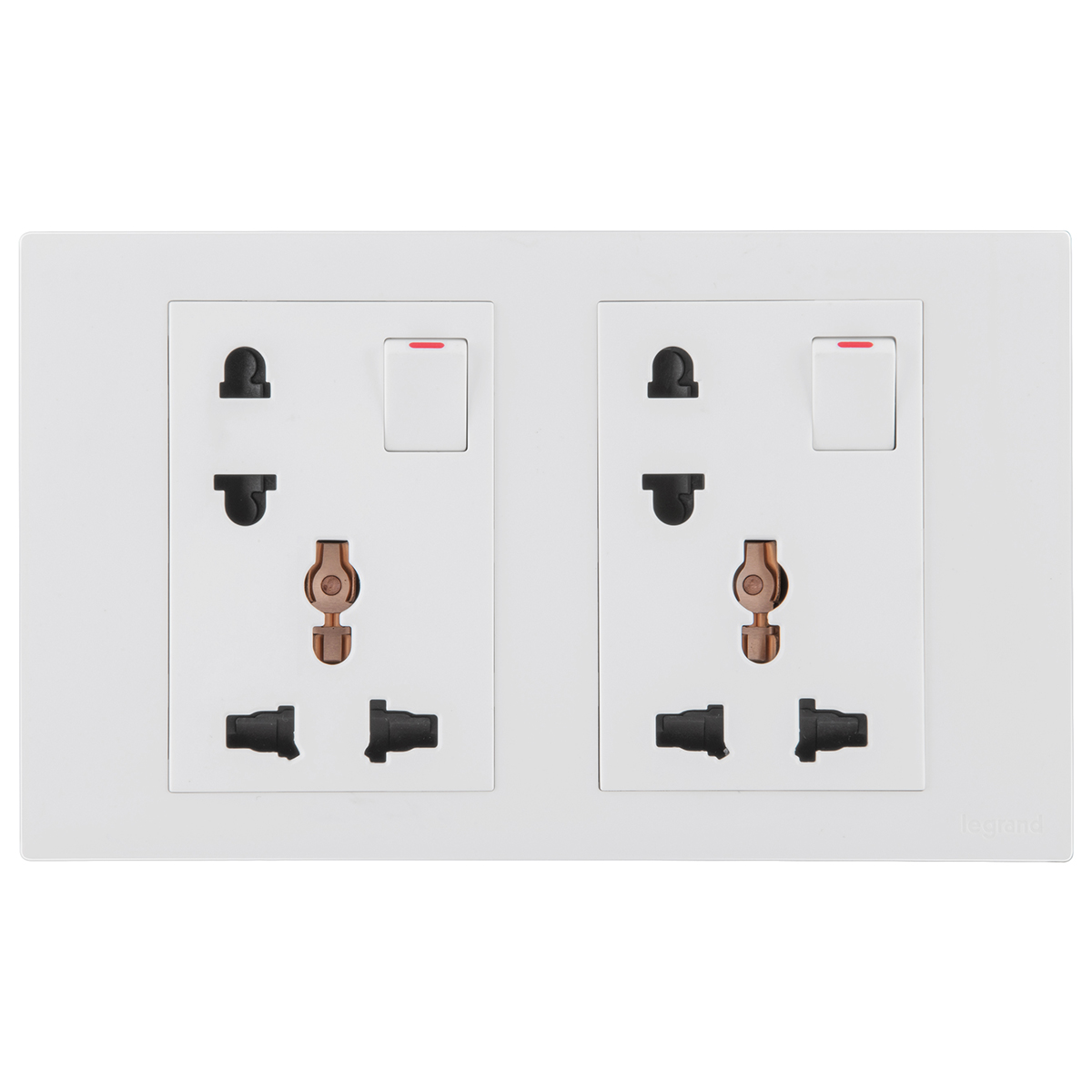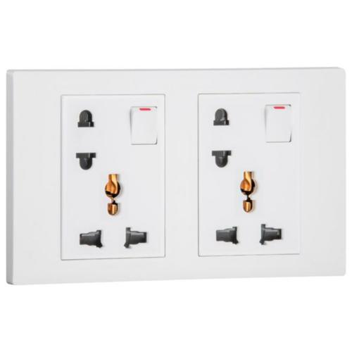 This device combines 2 sockets. A multistandard switched socket which allows the supply of power to electrical device compatible with Euro, US, Indian, Chinese or British standards and a switched Euro US socket.