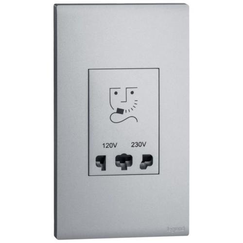 The shaver socket allows to supply power to a shaver compatible with European, British and Australian standards 2P plugs. 2G vertical plate