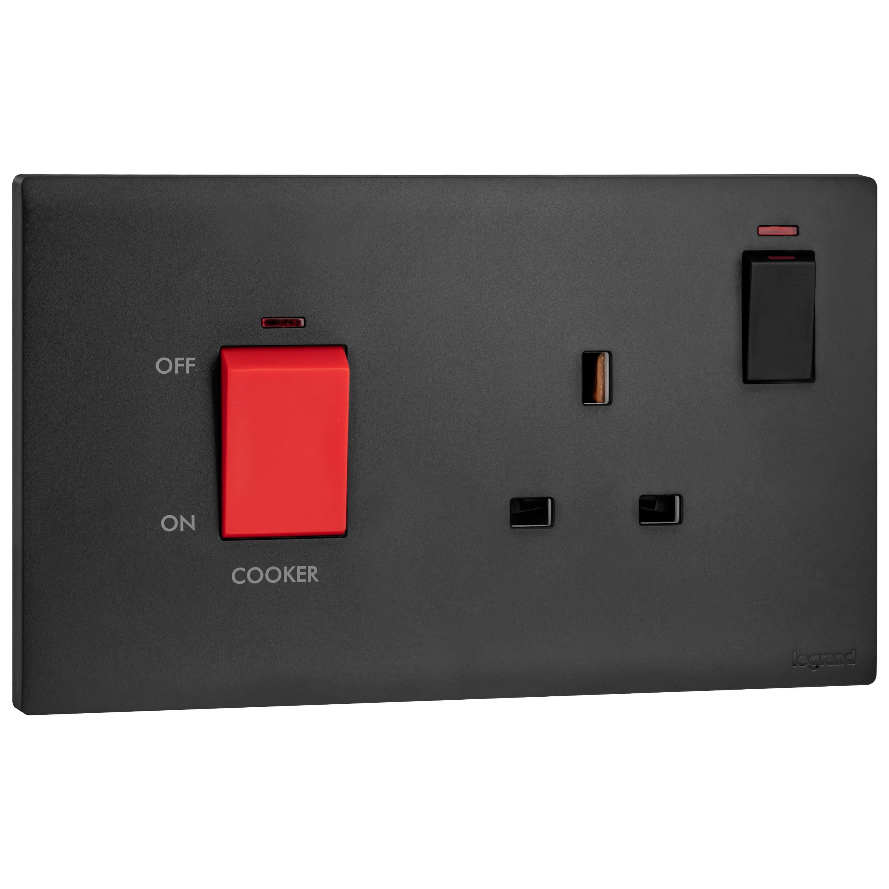 Allows a secure connection and switch for heavy loads up to 45A (water-heater, ovens, stoves, etc).