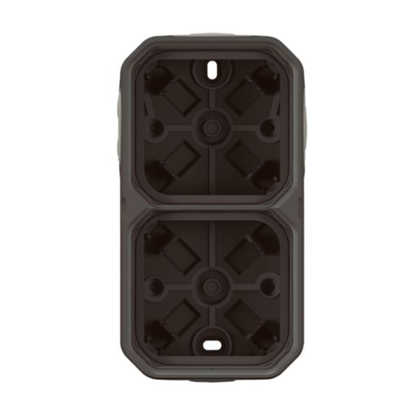 The anthracite waterproof 2-gang box Plexo allows a surface mounting of all Plexo functions (mechanism products). This box conception gives the opportunity to install it horizontally or vertically. For indoor or outdoor use.